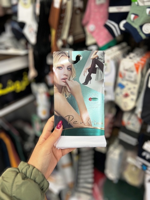 این محصول جورابشلواری ضخیم مارک پنتی نخ 120 رنگ سفید میباشد
