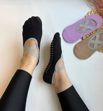جوراب پیلاتس و یوگا مدل بندضربدری کف استوپ دار